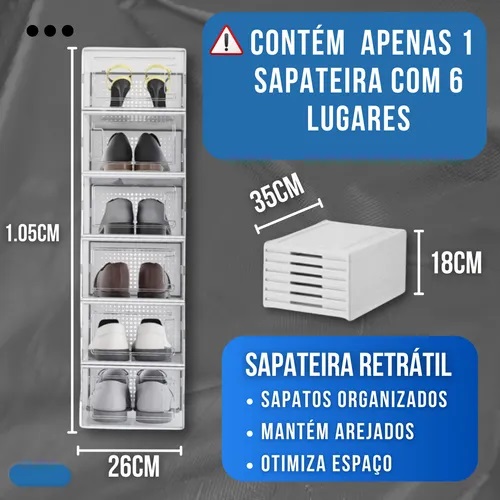 Preservação dos Calçados: Sapatos empilhados deformam e estragam. Com 6 lugares individuais, seus calçados ventilam e duram muito mais.